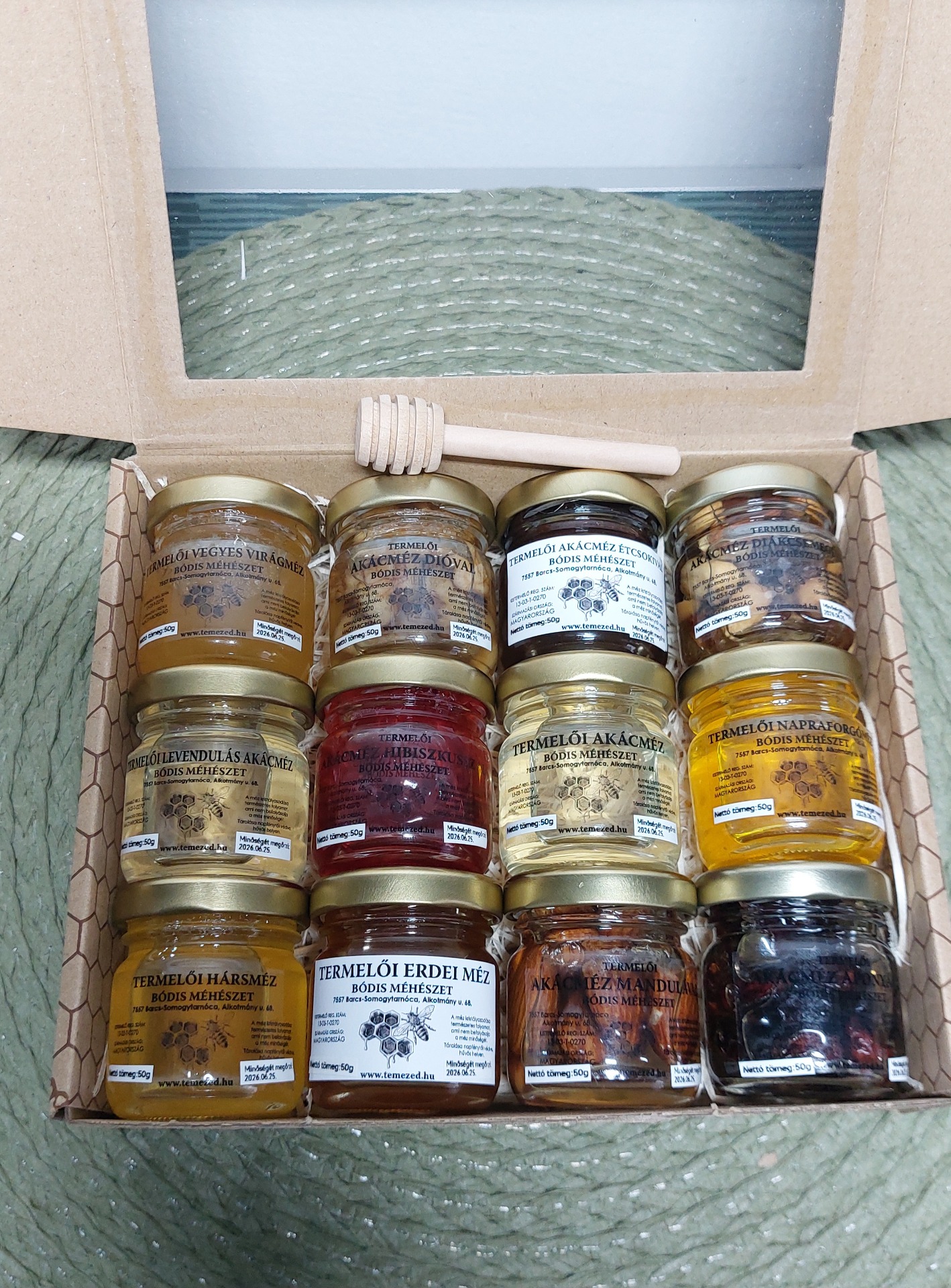 Mini mézcsodák - 50g tiszta varázslat 12 ízben Csokis, levendulás, magvas és aszalt gyümölcsös különlegességek-apró üvegben, nagy élménnyel! Dobd fel a napod egy kanál természetes energiával, vagy lepd meg szeretteidet ezekkel az édes mini kincsekkel. Kóstold végig mindet - egy falat méz, egy világnyi íz! Kérhető külön-külön, vagy ajándékcsomagokba.
